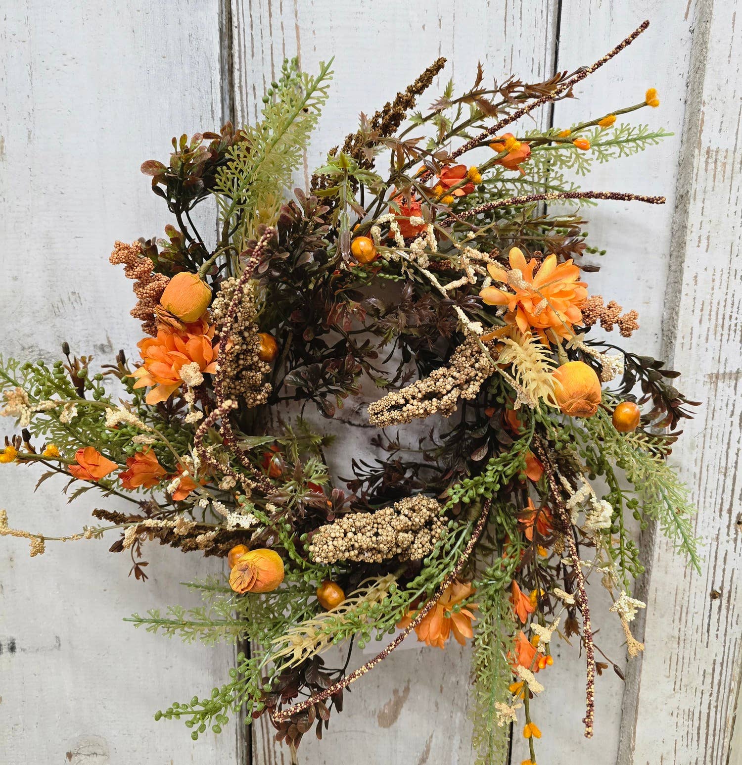 The Autumn Glow 6.5in Candle Ring from Wholesale Home Decor is a beautiful artificial flower piece. WHD, a family-owned business for over 15 years, offers quality products at reasonable prices. Our product line ranges from florals like candle rings and wreaths to light strands, metal signs, decor pieces, LED candles, and more. We aim to keep our customers satisfied with our diverse range of items.