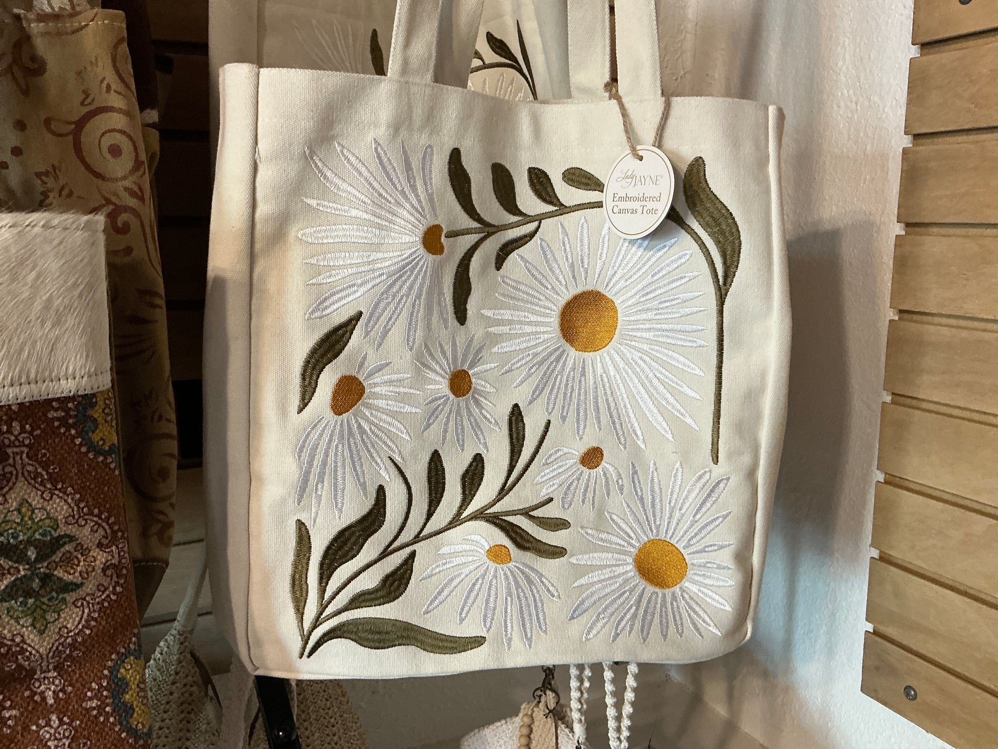 Daisy embroidery tote