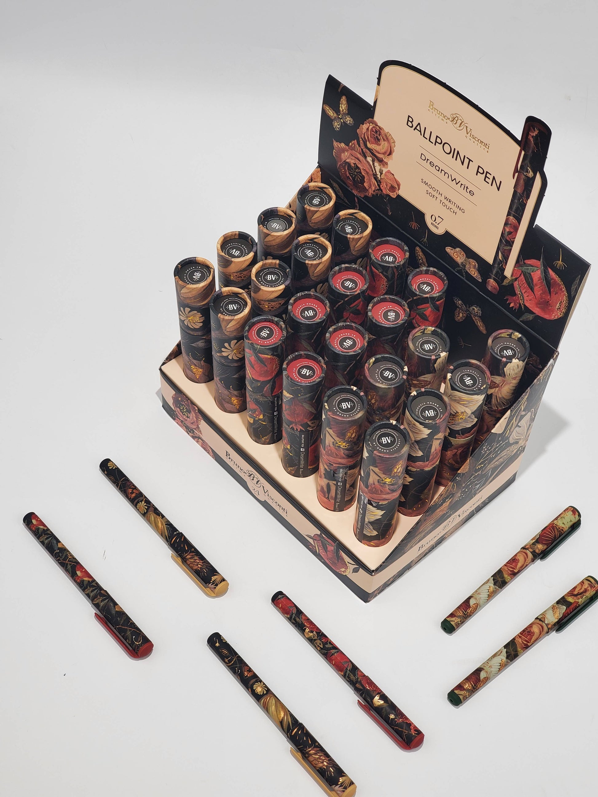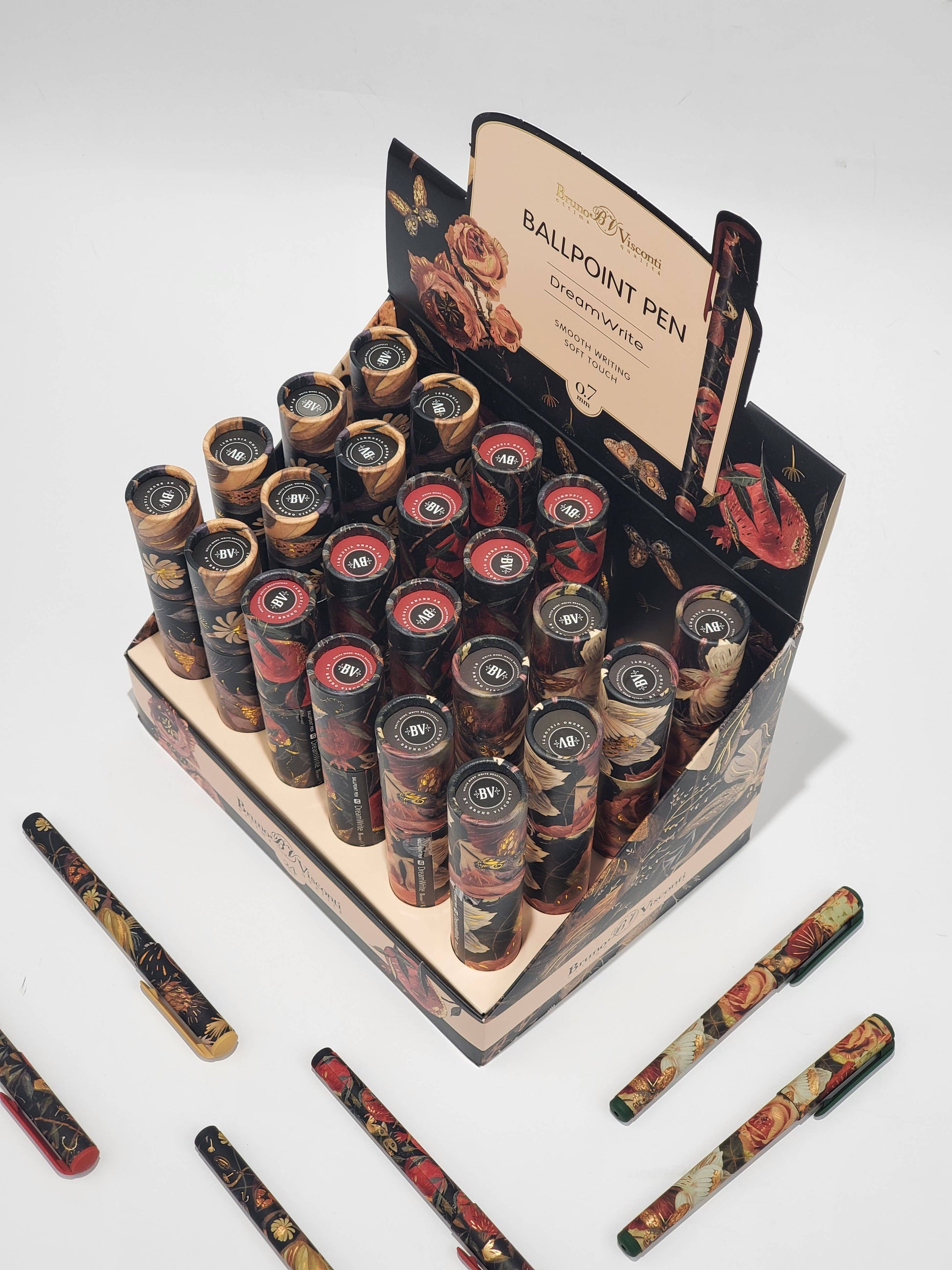 Our new DreamWrite Lush Series features our beautiful Lush Flora illustrations both on a decorative gift tube and on the cap and barrel of the pen. Each pen features a .7mm Tip and black ink. Comes in assorted pack of 24 featuring 3 designs Features rich autumn colors. Great Stocking Stuffers and Holiday Gifts!