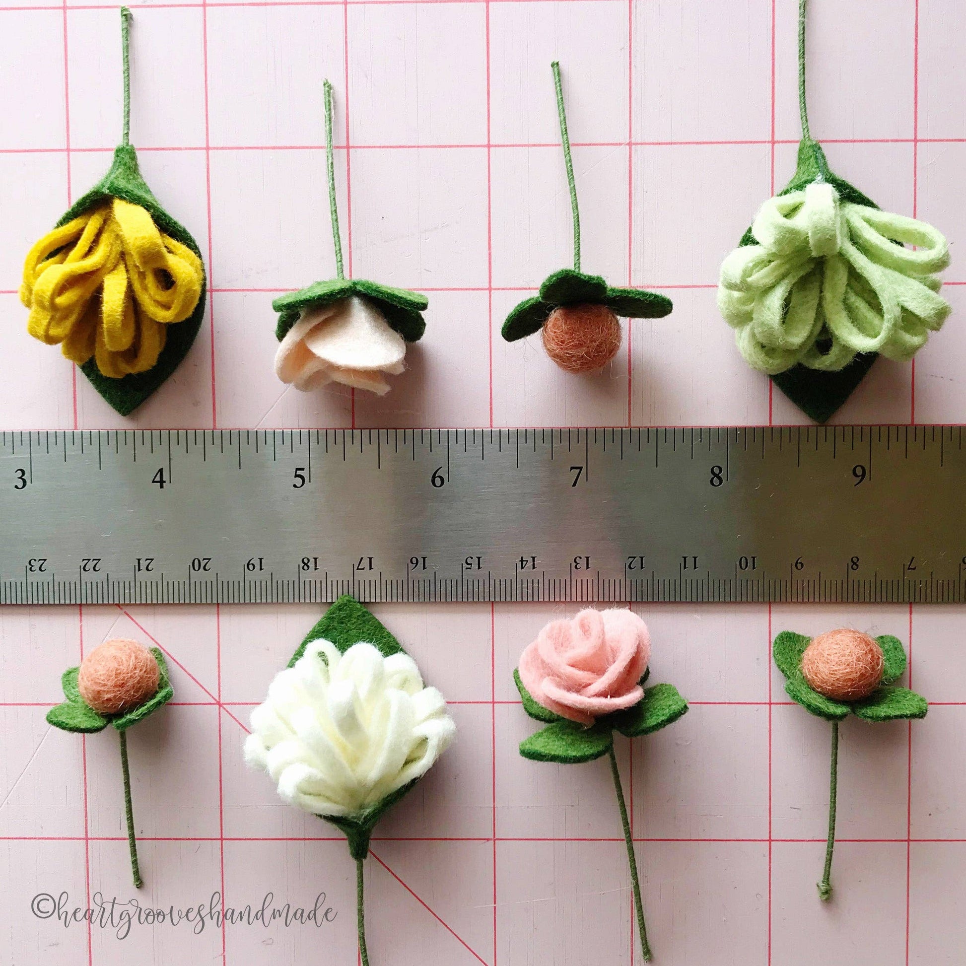 A felt craft kit designed by Beth for Heartgrooves Handmade for making beautiful felt flowers on your own. The high-quality wool blend felt pieces are cut and organized for you to have a fun and stress-free crafting experience. The kit includes step-by-step written instructions and materials needed to make the felt flowers shown. All you will need is a hot glue gun and sharp scissors for minimal cutting to complete the flowers.