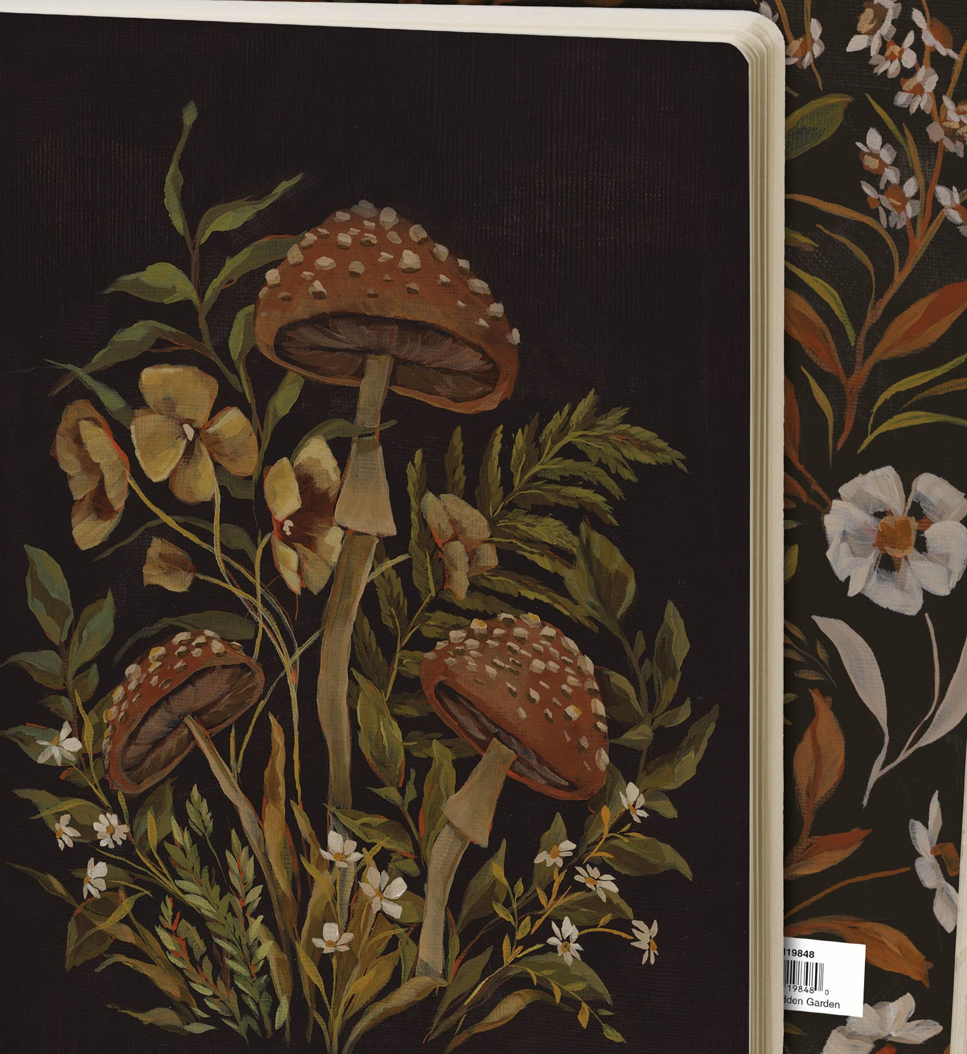 A double-sided journal from our Moody Collection displaying a garden inspired design of mushrooms and wildflowers in a deep color palette on the front and back. Design is replicated from original artwork hand painted in a unique watercolor style. Our Hidden Garden journal includes 160 lined pages and an open spine to lay flat for easy use when writing. A stylish garden-themed gift perfect for an everyday accessory.