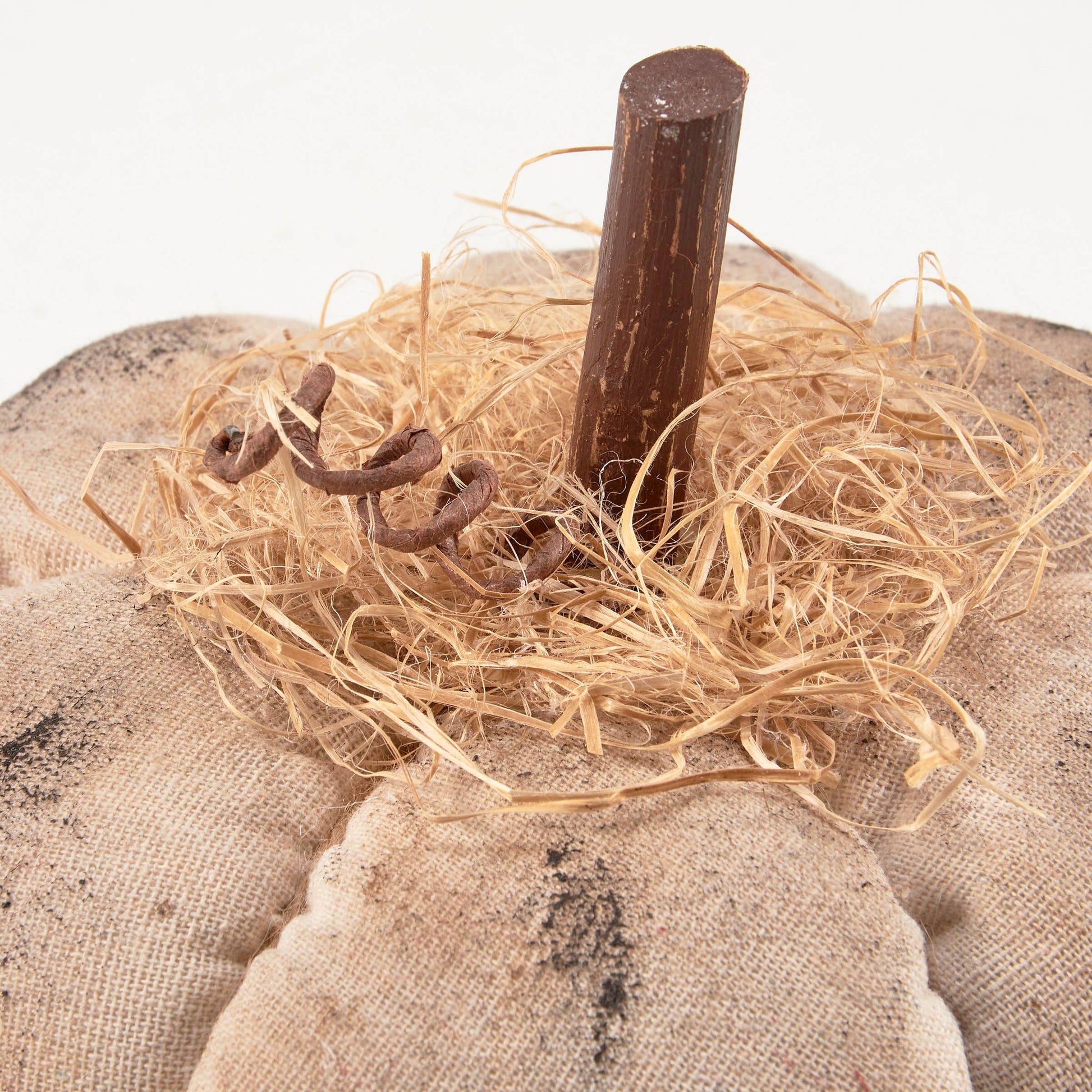A decorative pumpkin from our Fall & Harvest Collection featuring a primitive inspired design using fabric and natural wood. Our Primitive Cream pumpkin is designed to free-stand on any flat surface. Place in a display to add a touch of autumn or with other decorative pumpkins as a collection. A rustic seasonal home accent with a variety of display options.