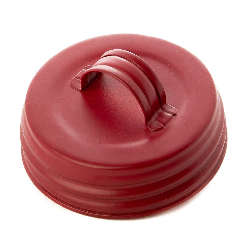 This Rustic Metal Small Mouth Mason Canning Jar Canister Lid has a top handle. Perfect for crafters, DIY enthusiasts, and home decorators looking to add that special finishing touch.